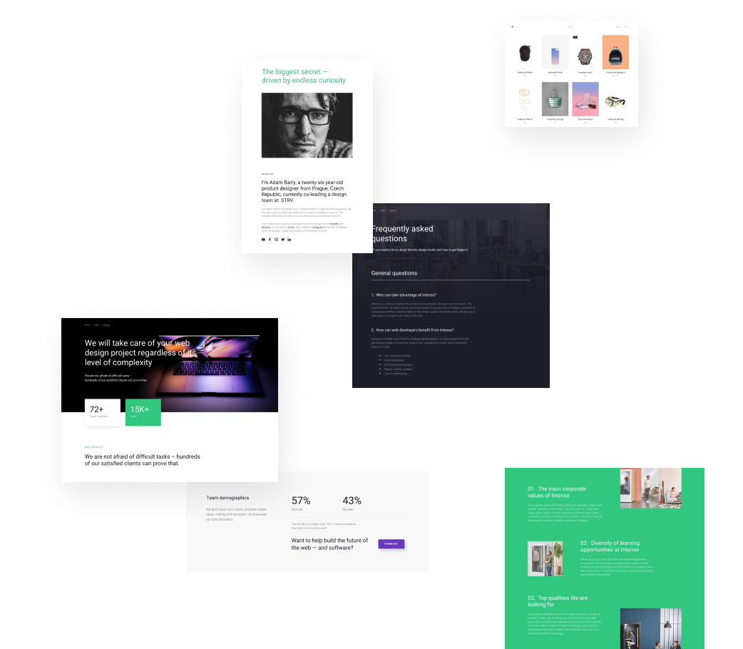 Easily change any element of Intense with the best visual drag and drop builder.